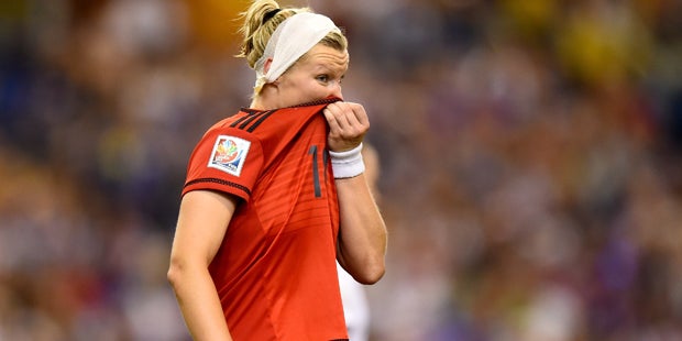 Nach einer knappen halben Stunde rasselten Alexandra Popp und Morgan Brian im Luftkampf mit den Köpfen zusammen. Die Wolfsburger Stürmerin erlitt eine Platzwunde, konnte aber ebenso nach einer längeren Behandlungspause weitermachen wie die zunächst benommen wirkende Amerikanerin. In der zweiten Hälfte spielte Popp dann mit einem dicken Kopfverband weiter.