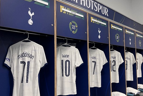 Darauf sieht man die Spinde der Tottenham-Stars in der Umkleide. In der Mitte hängt das Trikot von Harry Kane mit der Nummer 10, links davon das von Neuzugang James Maddison. Der englische Teamspieler, der für 46 Millionen Euro von Leicester kam, trägt im Test die Rückennummer 71. Das ist wohl kaum die Nummer, die der neue Star dann auch in der Meisterschaft trägt.