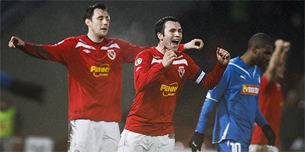 Die beiden Außenseiter und Zweitligisten MSV Duisburg und Energie Cottbus sind am Mittwochabend ins Halbfinale des deutschen Fußball-Cups eingezogen. Die Duisburger setzten sich vor 22.917 Zuschauern gegen den 1. FC Kaiserslautern mit 2:0 (1:0) durch. Stefan Maierhofer lieferte den Assist für den Führungstreffer und entschied damit das ÖFB-Teamduell mit seinem Freund Erwin Hoffer, der bei den Verlierern erst in der 76. Minute eingewechselt wurde, klar für sich. Auch Cottbus schaltete einen Bundesligisten aus, behielt gegen 1899 Hoffenheim (mit David Alaba und Andreas Ibertsberger) knapp mit 1:0 (0:0) die Oberhand.