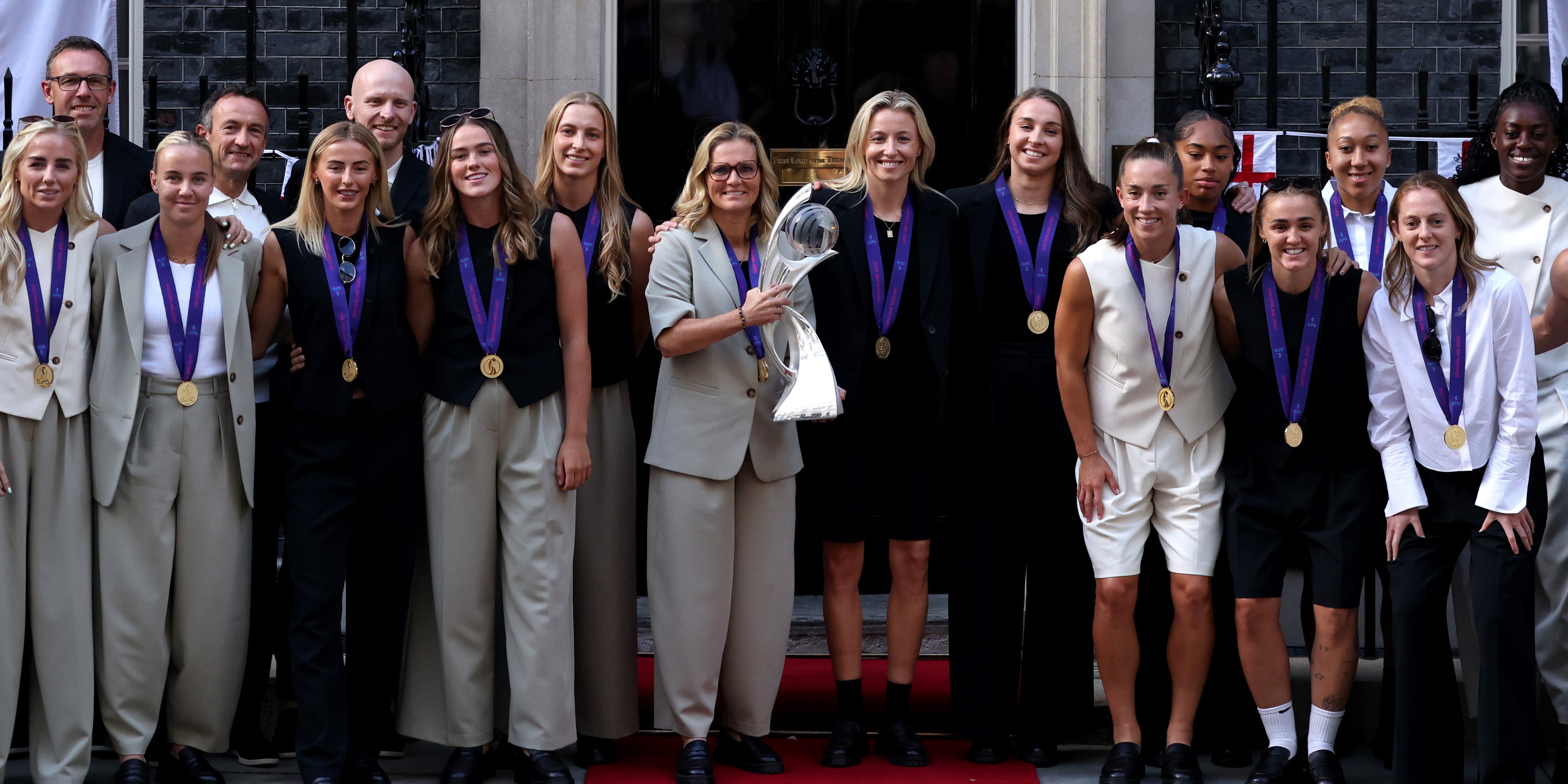 Nach einem stimmungsvollen Empfang am Flughafen durch die Fans sind Englands Fußballerinnen für ihren EM-Triumph von der Regierung an der Downing Street geehrt worden.