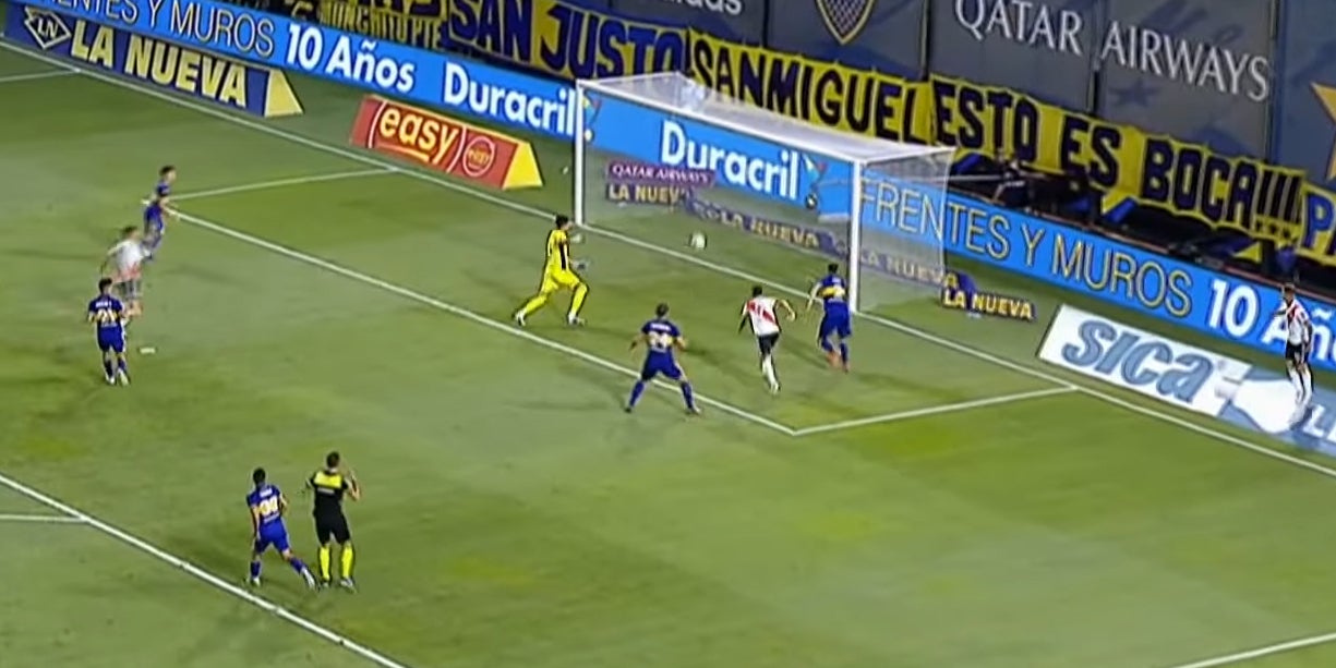 Doch was war passiert? Nach Toren von Villa (41.) und Agustín Palavecino (67.) stand es im Derby 1:1, beide Teams nach Gelb-Rot für Zambrano (69.) und Casco (79.) nur noch zu zehnt. Dann kurz vor Ende der Partie hatte River Plate eine hochkarätige Chance zur Führung. Álvarez setzte sich im Strafraum gegen López durch, knallte den Ball auf das Gehäuse. Torwart Andrada machte sich lang, kam trotzdem nicht an den Ball. Die Kugel sprang aufs leere Tor zu. Doch dann! Anstatt rein zu kullern, stoppte der Ball kurz vor der Linie plötzlich, rollte zur Seite weg. Die Boca Juniors konnten klären.