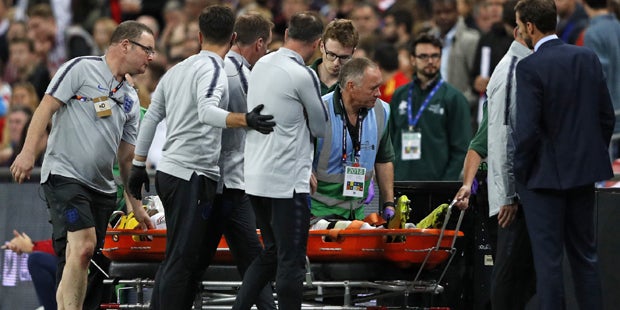 England-Trainer Gareth Southgate kündigte nach der Partie im Londoner Wembley-Stadion weitere medizinische Untersuchungen des Linksverteidigers an. "Der Sturz sah schrecklich aus", sagte der Coach.