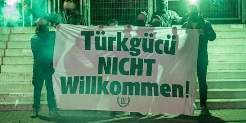 Die rechtsextremistische Kleinpartei "Der lll. Weg", die laut Verfassungsschutz antisemitisch und ausländerfeindlich agiert, hetzt seit mehreren Wochen gegen Türkgücü München. Vor dem Spiel des Aufsteigers am 23. Oktober in Zwickau ist ein schockierendes Foto im Netz aufgetaucht. Vermummte, die bei Dunkelheit vor dem FSV-Stadion posieren und ein Banner hochalten. Die Aufschrift: „Türkgücü NICHT willkommen!“