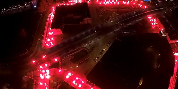 Da die Fans allesamt vermummt waren, ist nicht davon auszugehen, dass die Aktion angemeldet war. Dennoch schaffte man es, akkordiert mehrere Straßenzüge zu "besetzen" und dann gleichzeitig die Pyro-Fackeln zu entzünden. Das Ergebnis: spektakulär. Aber sehen Sie selbst!
