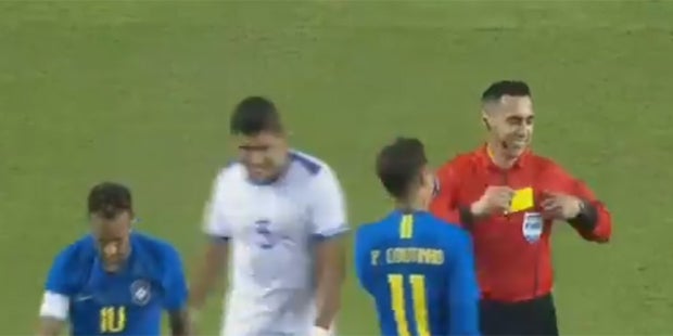 Brasiliens Fußball-Nationalteam hat am Dienstag in einem Test in Landover (Maryland) El Salvador mit 5:0 bezwungen. Bereits in der 4. Minute brachte Neymar die Brasilianer im zweiten Länderspiel nach dem Aus im WM-Viertelfinale mit einem Elfmeter in Führung. Der Superstar gab zudem drei Assists, stand aber auch kurz vor der Pause im Mittelpunkt, als er wegen einer Schwalbe die Gelbe Karte sah. Neymar hat sich spätestens bei der WM in Russland den Ruf des Schwalbenkönigs erarbeitet. Im Netz gab es viel Spott für die maßlos übertriebenen und melodramatischen Einlagen des Superstars. Auch gegen El Salvador fiel Neymar viel zu leicht im Strafraum. Der Schiri zeigte ihm Gelb und konnte sich ein Grinsen nicht verkneifen.