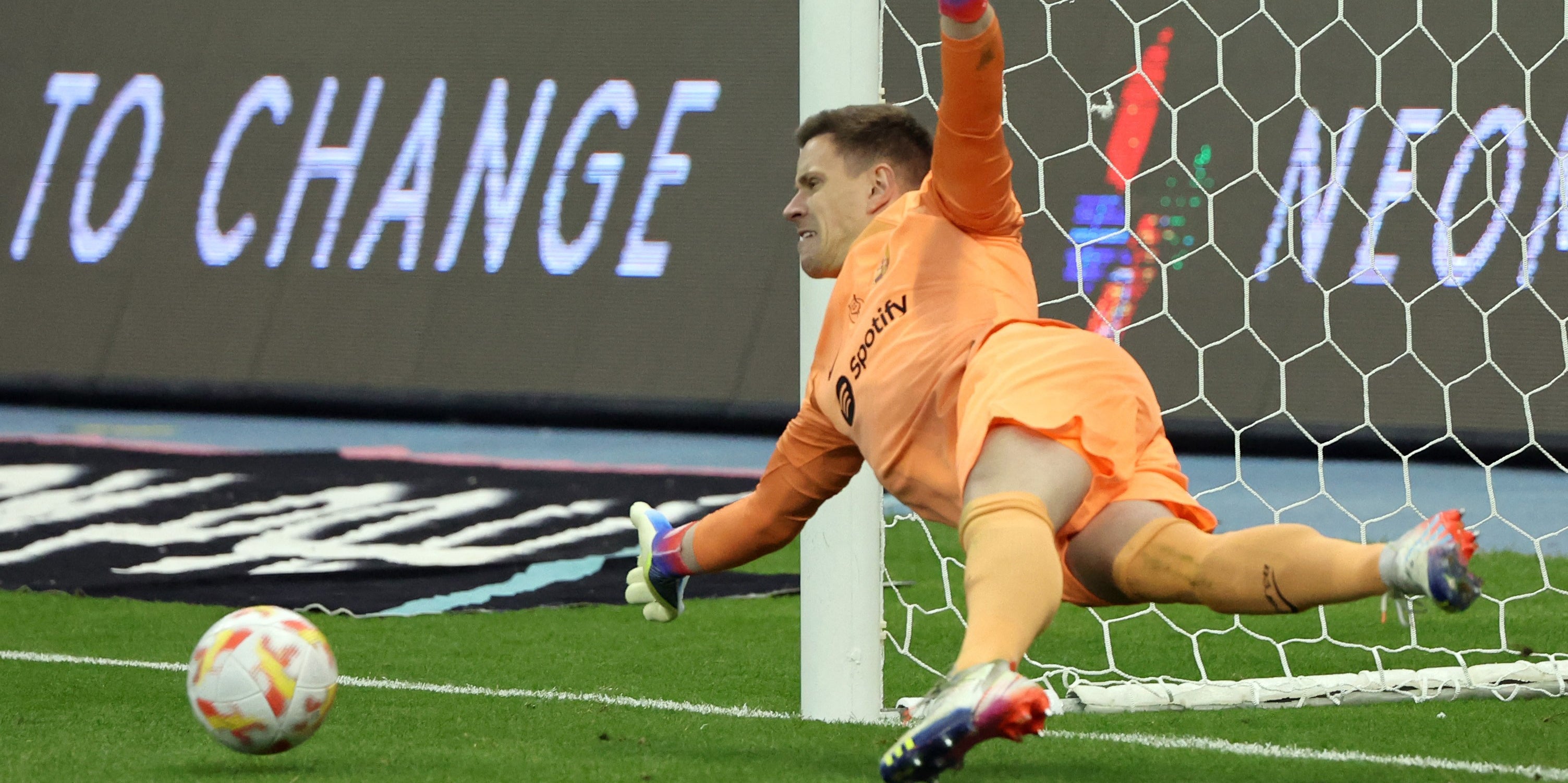 Mit zwei gehaltenen Elfmetern sicherte der deutsche Teamgoalie dem Tabellenführer der Primera Division am Donnerstag in Riad (Saudi-Arabien) einen 4:2-Halbfinalerfolg im Elfmeterschießen gegen Real Betis Sevilla.