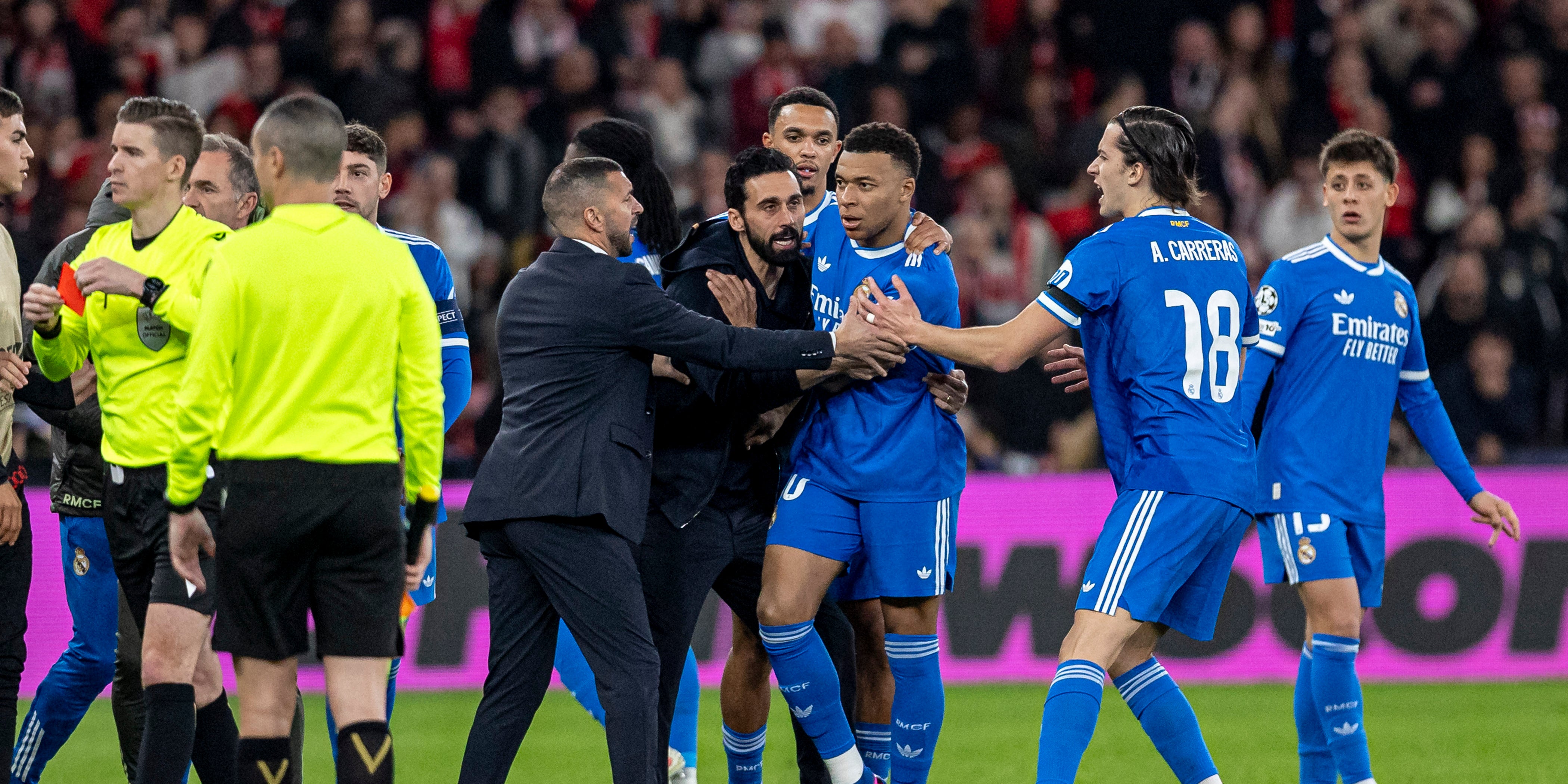 Real Madrid feierte einen 1:0-Auswärtssieg bei Benfica Lissabon, doch das Sportliche rückte durch eine zehnminütige Unterbrechung in den Hintergrund. Torschütze Vinicius Junior (50.) meldete Schiedsrichter Francois Letexier eine vermeintlich rassistische Beleidigung durch Benficas Gianluca Prestianni. Das Spiel wurde fortgesetzt, doch für Benfica-Coach Jose Mourinho endete der Abend nach einer Gelb-Roten Karte wegen Kritik (86.) vorzeitig; er fehlt damit im Rückspiel nächsten Mittwoch.