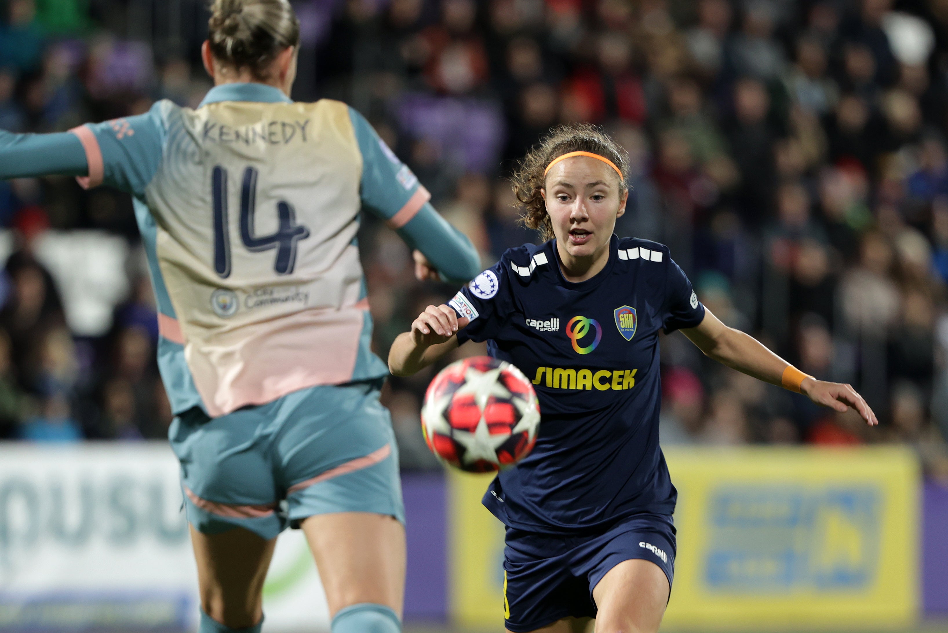 Bereits in der 5. Minute gab es den Rückschlag für die Niederösterreicherinnen. Nach Vorlage von Aoba Fujino schlenzte Australierin Alanna Kennedy das Leder ins rechte obere Eck. Auch nach dem frühen Gegentor blieb es nicht ungefährlich für die Gastgeberinnen. ManCity drängte das Team von Trainerin Celia Brancao erfolgreich in die eigene Spielhälfte zurück, brachten SKN-Goalie Carina Schlüter ordentlich ins Schwitzen. Doch die Wölfinnen wehrten sich.