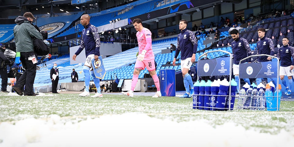 Schneefall vor dem Königsklassen-Hit Man City gegen Paris SG sorgt in Manchester für verrückte Platzverhältnisse.