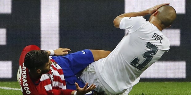 Real-Kicker Pepe hat beim Champions-League-Finale gegen Atletico Madrid einmal mehr seine schauspielerischen Fähigkeiten unter Beweis gestellt. Der Portugiese mimte nach zwei "Brutalo-Fouls" den sterbenden Schwan und zog sich so nicht nur den Unmut der Atletico-Kicker, sondern auch der Twitter-Gemeinde zu.
