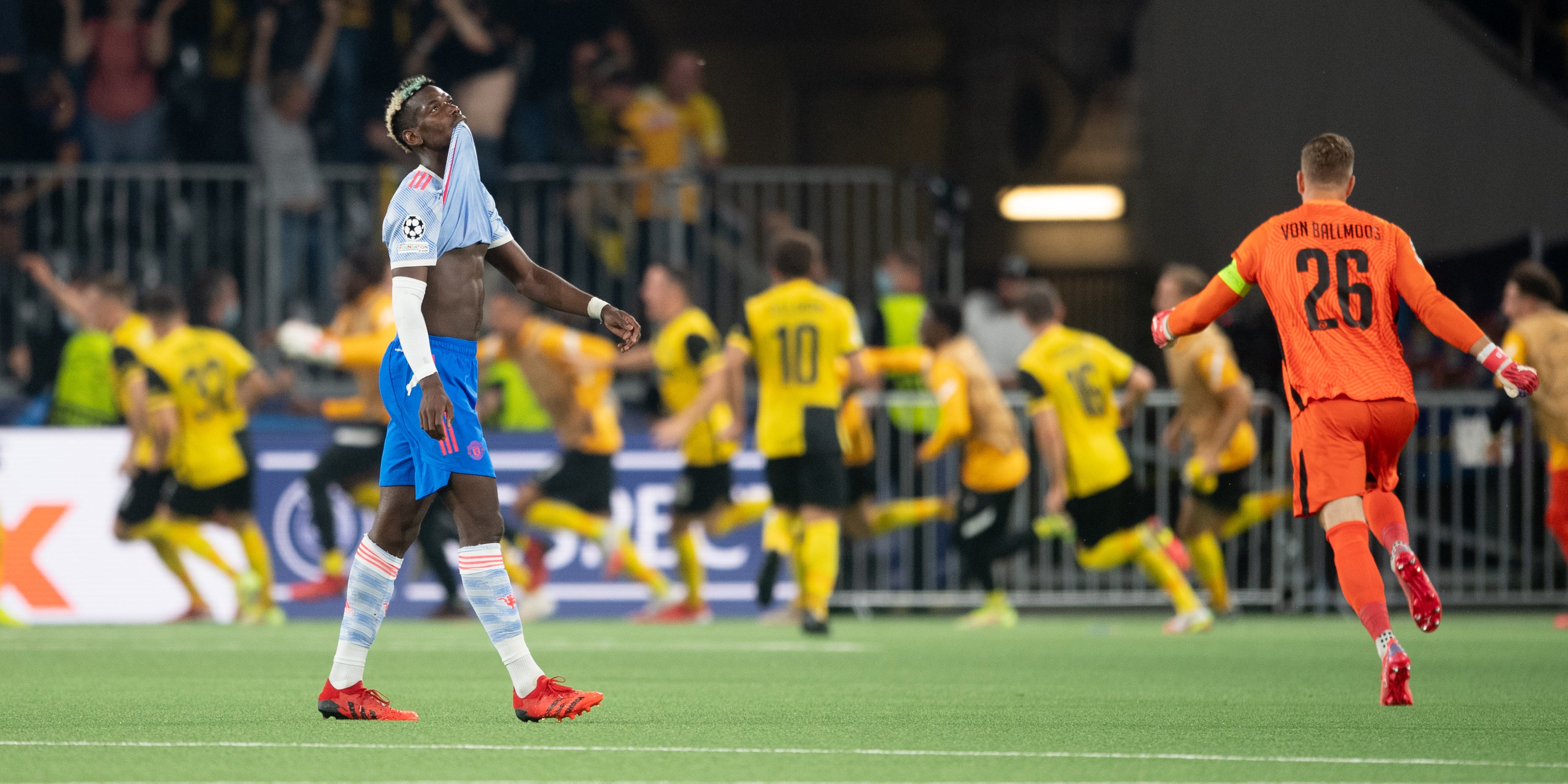 Die Eidgenossen zeigten sich aber keineswegs geschockt, sondern setzten immer wieder starke Angriffe. Obendrein schwächte sich Manchester selbst: Außenverteidiger Aaron Wan-Bissaka sah nach einem üblen Tritt gegen das Sprunggelenk von Berns Christopher Martins Pereira völlig zurecht die Rote Karte (35.). In Hälfte zwei verstärkten die Young Boys ihre Offensivbemühungen zusehends und wurden belohnt. Nach einem Stanglpass kam United-Verteidiger Raphael Varane zu spät und Nicolas Moumi Ngamaleu spitzelte das Leder unhaltbar ins Tor (66.).