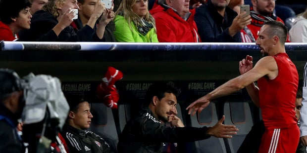 Bayern-Trainer Ancelotti reagierte auf die ganze Aktion sauer und verpasste seinem Starspieler einen Anpfiff von der Bank aus. In der 78. Minute nimmt Ancelotti den Franzosen dann vom Feld. Ribery reagiert wütend, verweigert einen Handschlag mit dem Trainer und wirft sein Trikot Richtung Bank. Der 34-Jährige flucht weiter und lässt sich erst langsam von Sportdirektor Hasan Salihamidzic beruhigen.