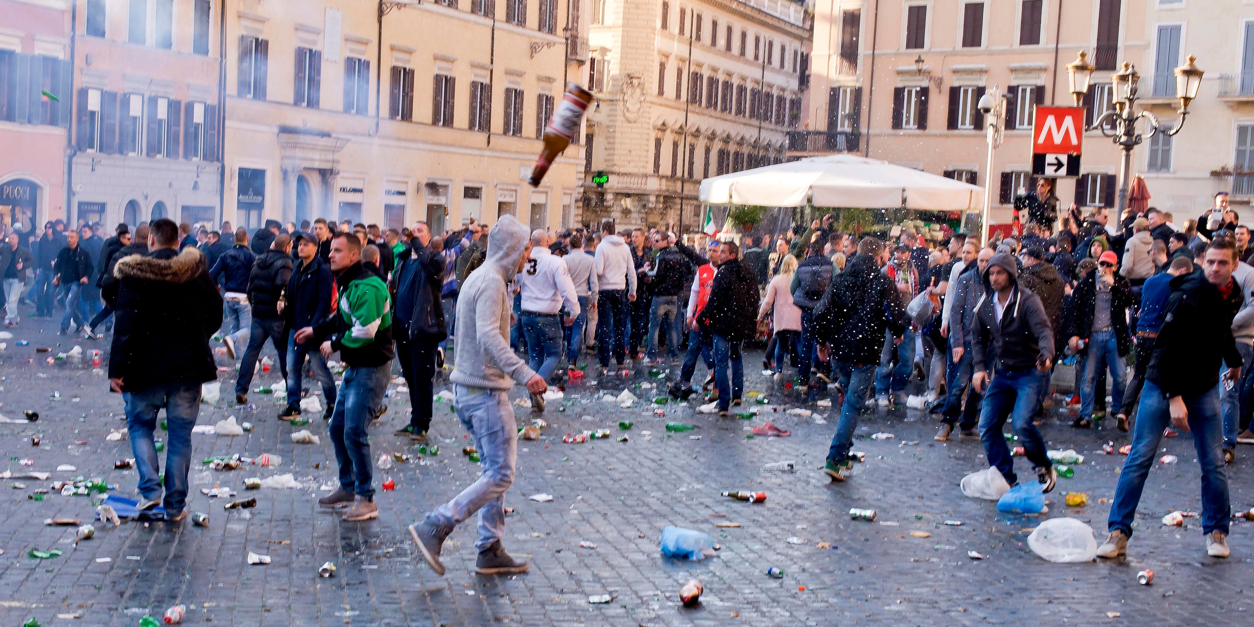Anfang 2015 hatten Rotterdam-Anhänger in Rom randaliert und unter anderem den historischen Brunnen "Fontana della Barcaccia" unterhalb der berühmten Spanischen Treppe verwüstet und beschädigt. Sie lieferten sich Auseinandersetzungen mit der Polizei, die 28 niederländische Krawallmacher festnahm.