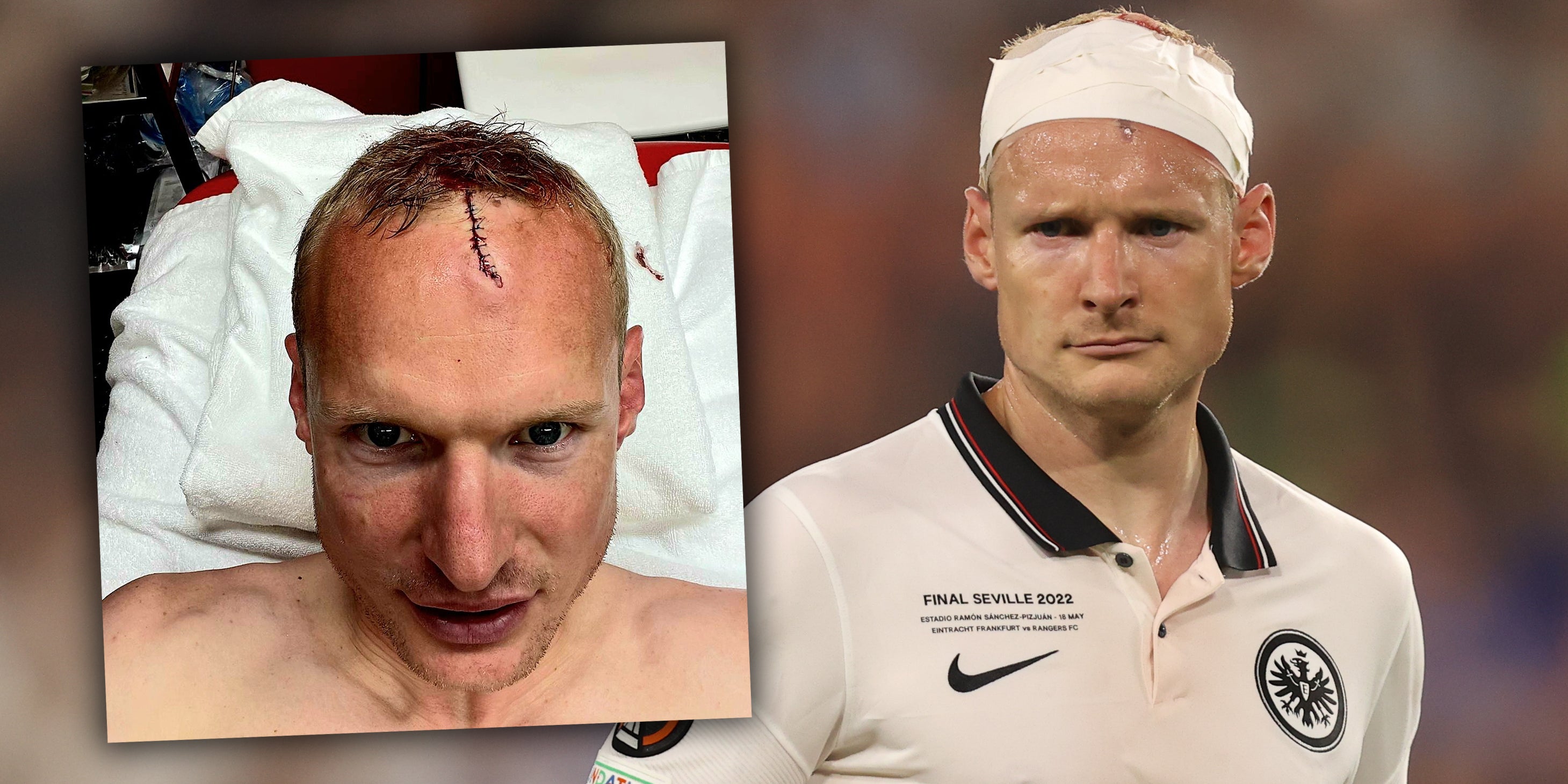 Frankfurt-Kapitän Sebastian Rode erlitt im Europa-League-Finale einen frühen Schock und spielte mit einer Platzwunde auf der Stirn weiter. Später teilte er ein Foto von den Nähten auf Twitter.