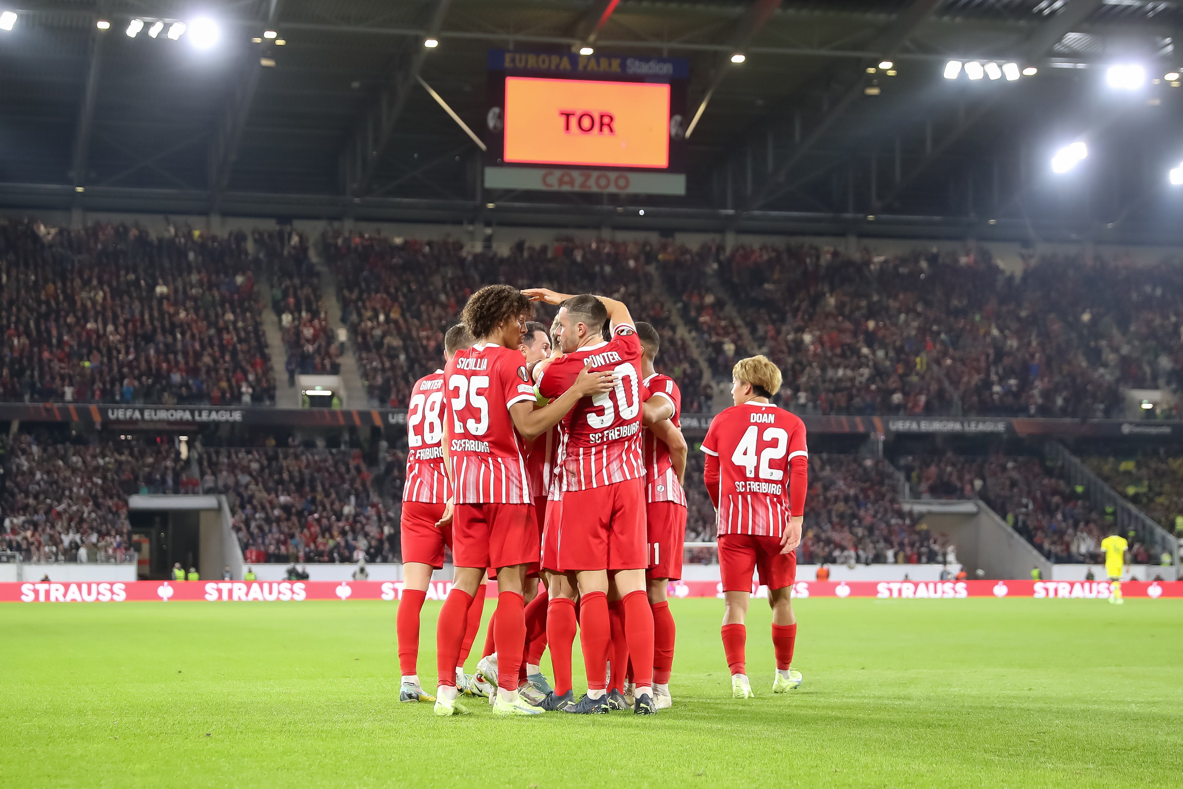 Philipp Lienhart war in der Innenverteidigung der Freiburger über die gesamte Spielzeit zugange, Gregoritsch fiel ab der 65. Minute die Jokerrolle zu. Lukas Kübler (26.) hatte die Gäste in Führung gebracht, erst der Österreicher war es aber, der zu Beginn der Schlussphase für eine Art Vorentscheidung sorgte. Nach ihm trafen auch noch Kevin Schade (82.) und Woo-Yeong Jeong (87.). Mit zwölf Punkten aus vier Spielen liegen die Freiburger vor Qarabag (7), Nantes (3) und Olympiakos Piräus (1).