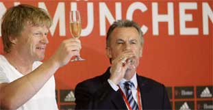 Oliver Kahn und Ottmar Hitzfeld verlassen dei Bühne Bundesliga. Nürnberg muss in Liga 2, Hamburg und Wolfsburg sind im UEFA-Cup