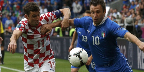 Kurz vor der Pause: Cassano köpfelt nach einer Pirlo-Ecke knapp am rechten Kreuzeck vorbei (43.).