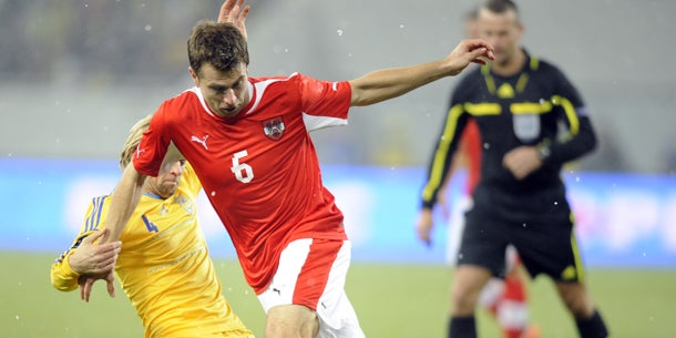 41.: Baumgartlinger vertändelt im Mittelfeld den Ball, die Ukraine im Konter aber zu langsam. Da kann sich die ÖFB-Abwehr wieder formieren.