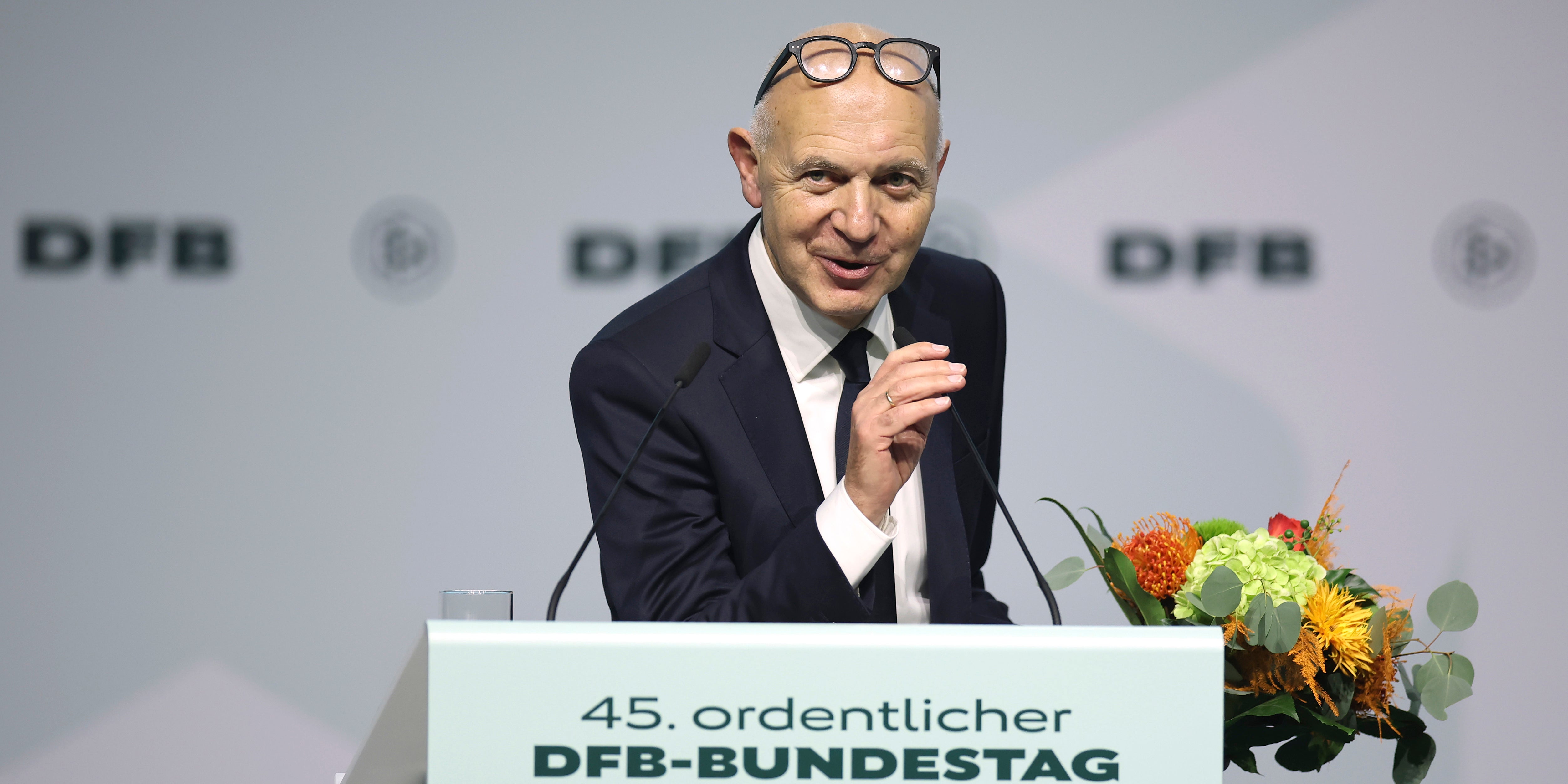 Der 64-Jährige wurde am Freitag auf dem 45. Ordentlichen DFB-Bundestag in Frankfurt am Main ohne Gegenkandidaten einstimmig bis Ende 2029 für seine zweite Funktionsperiode im Amt bestätigt.