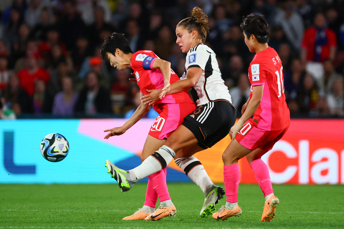 Die Deutschen starteten nach dem bitteren 1:2 gegen Kolumbien vor 38.945 Zuschauern verunsichert in die Partie. Nach etwas mehr als zwei Minuten konnte DFB-Torfrau Merle Frohms einen Abschluss von Phair Casey noch via Stange klären. Vier Minuten später spielte der Favorit vergeblich auf Abseits, Cho So-Hyun konnte nach einem Lochpass unbedrängt einschießen. Klara Bühl verabsäumte es zweimal (11., 15.), schnell wieder auszugleichen.