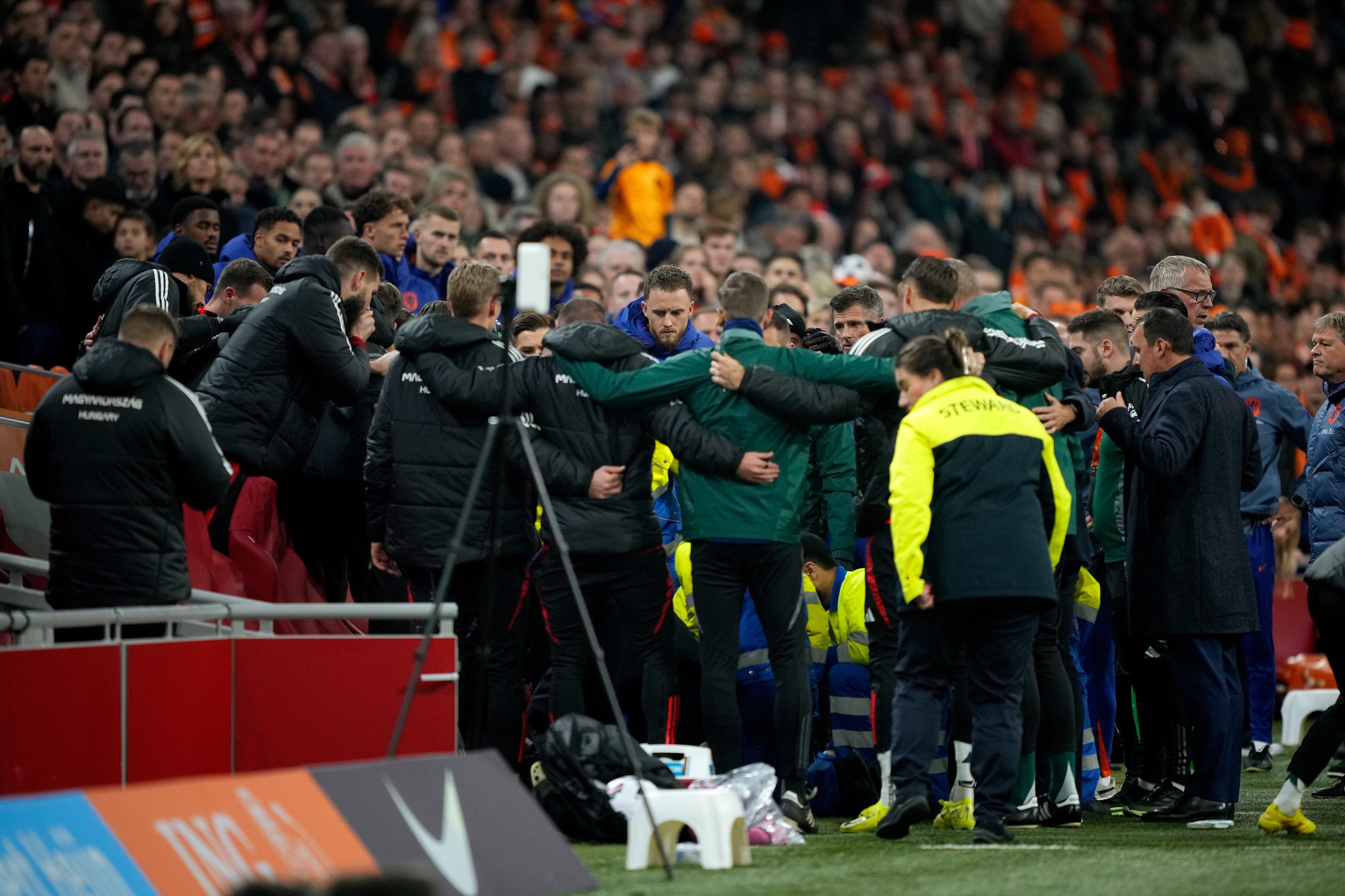 Der 4:0-(2:0)-Heimsieg der Niederlande in Amsterdam war von einem Zusammenbruch von Ex-Ungarn-Teamkicker Szalai überschattet. Der 36-Jährige, der nun als Co-Trainer der Magyaren arbeitet, sackte wenige Minuten nach Anpfiff an der Seitenlinie zusammen. Das Match in der Johan Cruijff Arena wurde sofort unterbrochen, Sanitäter eilten in die Coaching-Zone des Teams. Als die Sanitäter nach etwas über zwölf Minuten das Team-Mitglied in den Innenraum des Stadions brachten, brandete Applaus auf. Später berichtete der ungarische Verband auf X, Szalai sei stabil und bei Bewusstsein werde in einem Amsterdamer Krankenhaus untersucht.