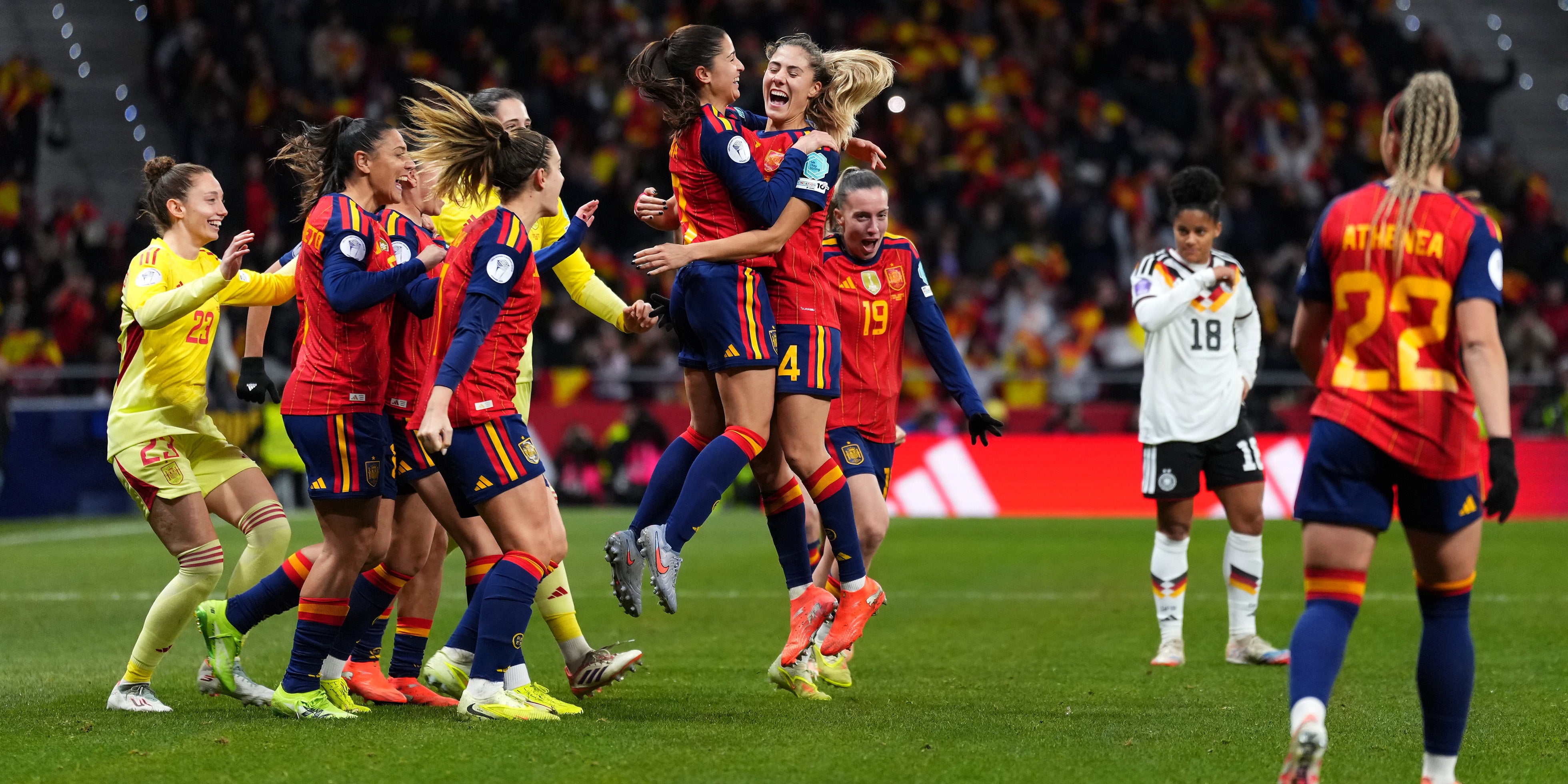 Die Fußball-Weltmeisterinnen setzten sich im Final-Rückspiel in Madrid gegen Deutschland mit 3:0 (0:0) durch. Die Spanierinnen führten die Gäste nach der Pause phasenweise vor und begeisterten die 55.843 Zuschauer im Estadio Metropolitano mit Traumtoren. Zweimal Clàudia Pina (61., 74.) sowie Supertalent Vicky López (68.) trafen für die alten und neuen Nations-League-Champions.