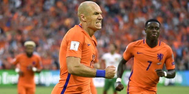 Das niederländische Fußball-Team hat am Sonntag die kleine Chance auf eine Teilnahme an der Weltmeisterschaft im kommenden Jahr in Russland gewahrt. Die Elftal setzte sich zu Hause gegen Bulgarien 3:1 (1:0) durch und rückte auf den dritten Platz in Gruppe A vor. Davy Plöpper (7.,80.) und Bayern-Star Arjen Robben ließen die Fans weiter hoffen (67.). Für die Bulgaren traf Georgi Kostadinow (69.).