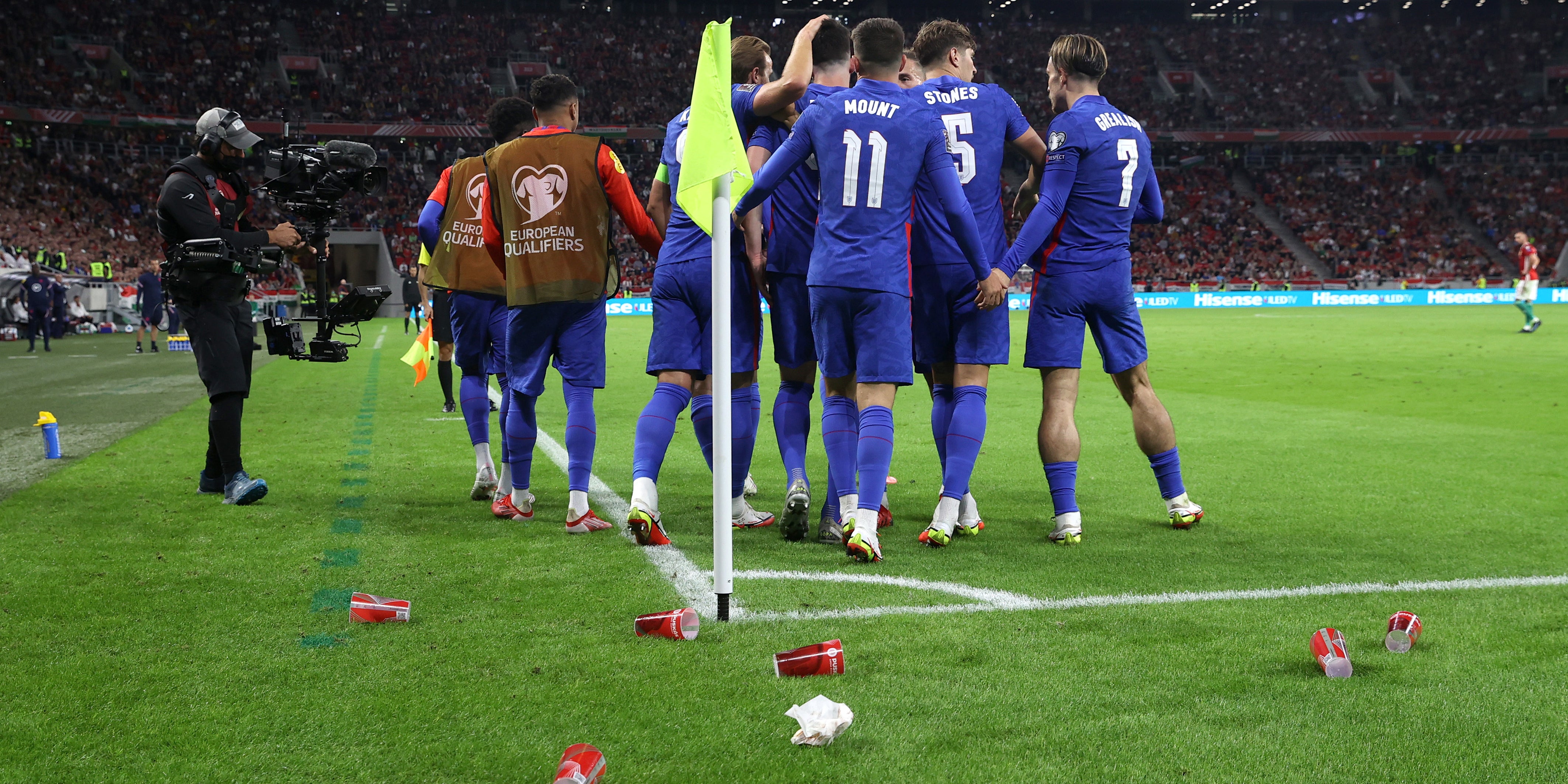 Die ungarischen Fans wüteten als Sterling den Zuschauerrängen näher kam und bewarfen ihn mit Trinkbechern. Einige der Becher waren sogar noch gefüllt. Teamkollege Declan Rice sorgte im Jubel für eine kuriose Szene: Der West-Ham-Profi hebte einen der Becher auf und trank aus ihm.