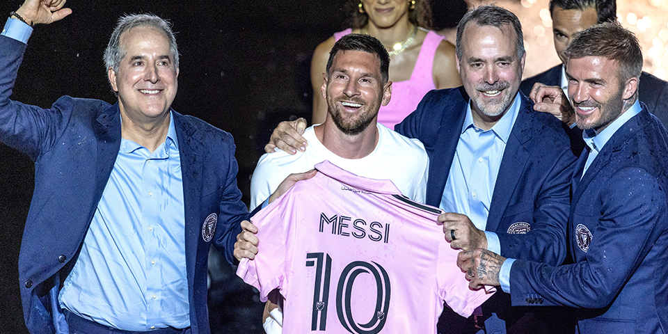 Im regennassen DRV PNK-Stadion in Miami wurde Lionel Messi am Sonntag zusammen mit seinem Mannschaftskameraden Sergio Busquets vor ausverkauftem Haus und trotz widriger Wetterbedingungen offiziell als Spieler von Inter Miami vorgestellt.