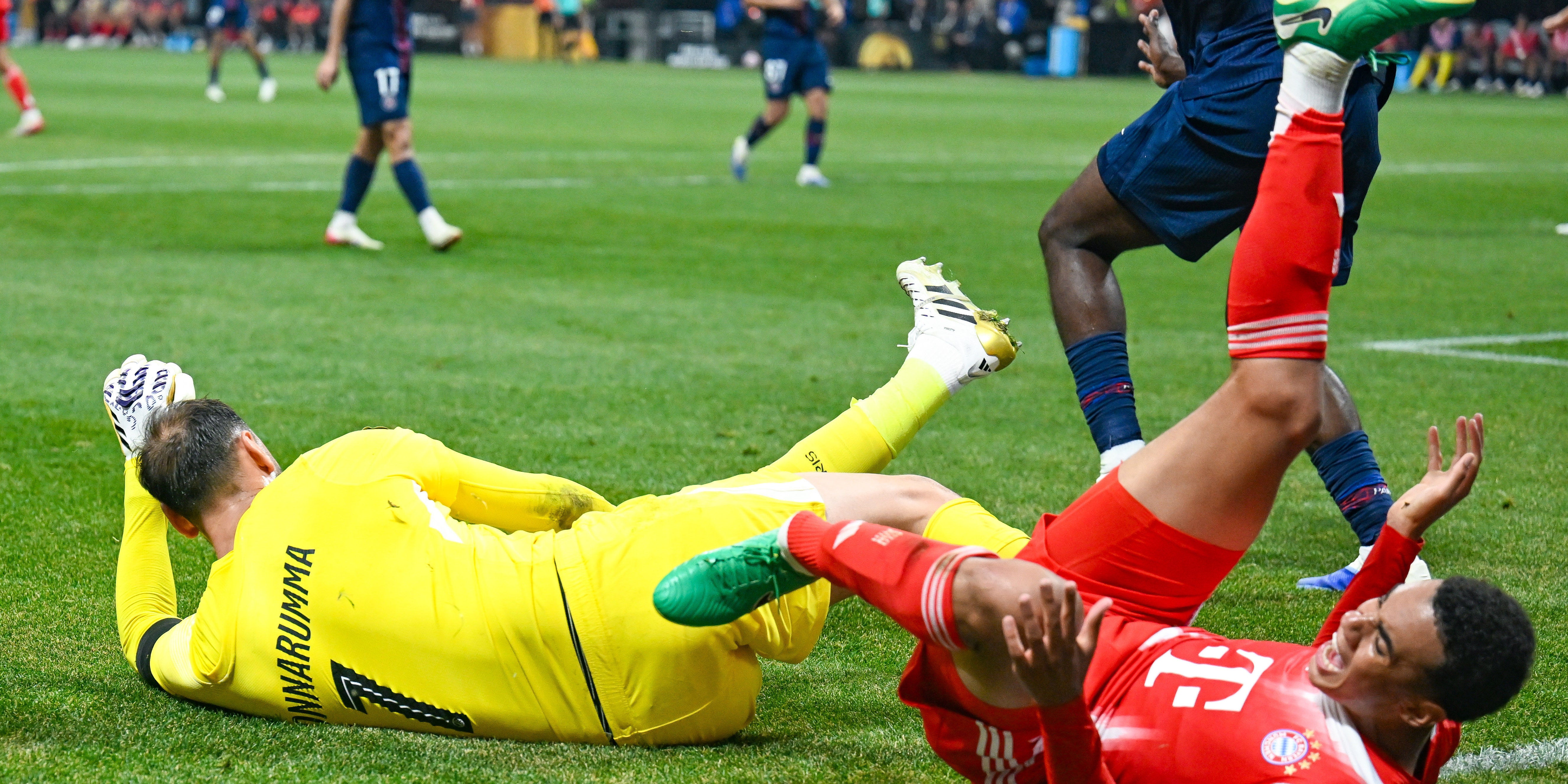 Bayerns Offensivstar Jamal Musiala schied kurz vor der Pause nach einem Zusammenstoß mit PSG-Goalie Gianluigi Donnarumma mit einer schlimmen und auch schlimm anzusehenden Beinverletzung aus. Es besteht der Verdacht auf Wadenbeinbruch, Bänderrisse und die Gewissheit, dass der 22-Jährige zumindest über mehrere Monate auch beim Nationalteam ausfällt. Nach der Rückkehr der Bayern vom Spielort Atlanta ins Basiscamp nach Orlando war die Rückreise nach Deutschland noch für (den heutigen) Sonntag angesetzt, die Operation soll zeitnah erfolgen.