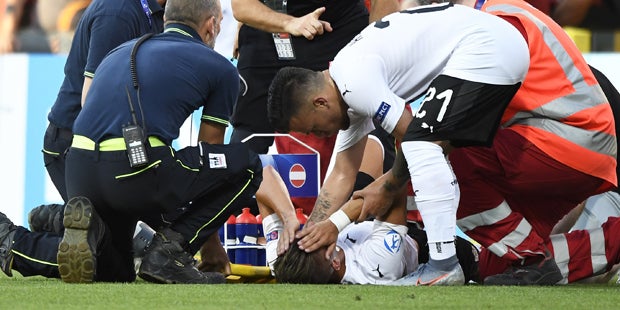 Österreichs Hannes Wolf hat bei der Fußball-U21-EM beim Sieg gegen Serbien (2:0) einen Bruch des rechten Außenknöchels erlitten. Dies gab der ÖFB nach einer Untersuchung des Offensivspielers in der Klinik Cattinara in Triest am Montagabend bekannt.
