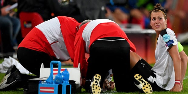 Es war der Schockmoment im Spiel gegen Frankreich: Henry foult Schnaderbeck schwer, die Kapitänin humpelt vom Platz. Diagnose: Rissquetschwunde am Sprunggelenk. Nun droht der Ausfall gegen Island. "Die Verletzung ist sehr tief. Wir müssen abwarten, wie sich das entwickelt", so Coach Thalhammer.