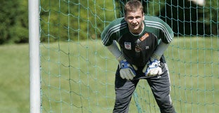Endlich ist er da: Rapids neuer deutscher Tormann Georg Koch (36) bekam Donnerstag bereits alle Hände voll zu tun. Und fühlt sich wohl in Wien...
