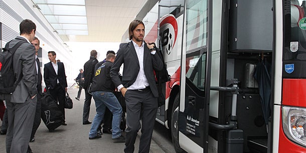 8:49: Eigentlich hätte das Team schon um 0:30 abfliegen sollen. Doch wegen Nebel und Glatteis konnte die extra angeheuerte Fokker in Lemberg nicht landen. Nach zwei Stunden Warterei im Mannschaftsbus kehrte man in das Hotel zurück.