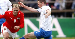 18.05 Uhr: Ausgleich für Österreich: Im Gegenzug trifft Stranzl nach einem Eckball zum wichtigen Ausgleich.