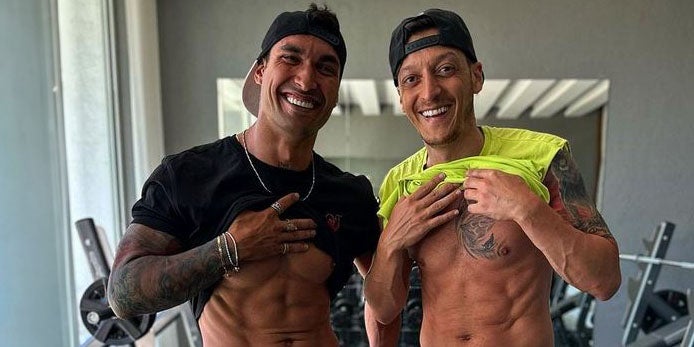 Der Deutsch-Türke posiert auf dem Foto mit seinem Personal-Coach Alper Aksac oberkörperfrei um mit den Fans seinen durchtrainierten Körper zu teilen. Das gute Recht des Fußball-Pensionisten, doch wer genauer hinsieht, kann seinen Augen kaum glauben.