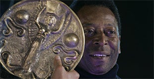 Fußball-Legende Pele ist am Mittwoch anlässlich der Eröffnung der Gedenkstätte des Mineirao-Stadions im brasilianischen Belo Horizonte geehrt worden. Der 67-Jährige erhielt eine Trophäe für den "Sportler des Jahrhunderts".
