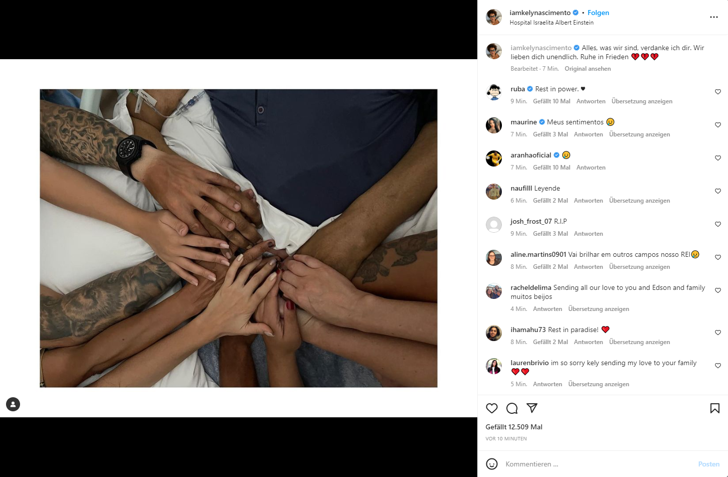 Mit den Worten "Alles, was wir sind, verdanke ich dir. Wir lieben dich unendlich. Ruhe in Frieden", nahm Pelés Tochter Kely Abschied.