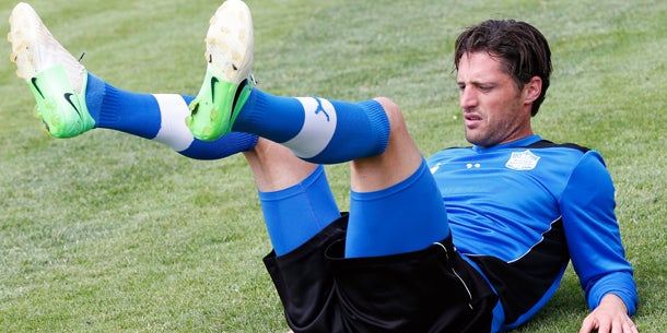 Andi Ivanschitz am Flughafen von Valencia. Beim lokalen Club Levante wird der Teamspieler in den nächsten Jahren seine Brötchen verdienen.