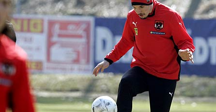 "Die Farben stehen für Wigan und Österreich, ich musste einen Kompromiss schließen", erklärte Scharner, der am Donnerstag noch zwecks Tarnung ausschließlich mit Kappe und Haube das Teamquartier verlassen hatte. Am Freitagabend trifft das ÖFB-Team in Wolfsberg in einem Testspiel auf die U19 der Austria-Kärnten-Akademie.