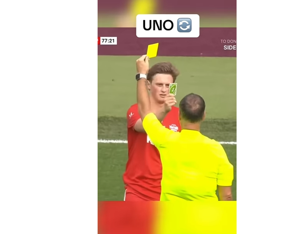Der YouTuber Max Fosh zückte während eines Wohltätigkeitsspiels des Sidemen FC am Samstag in London eine Uno-Richtungswechsel-Karte, nachdem ihm der Schiedsrichter Mark Clattenburg eine gelbe Karte gezeigt hatte.