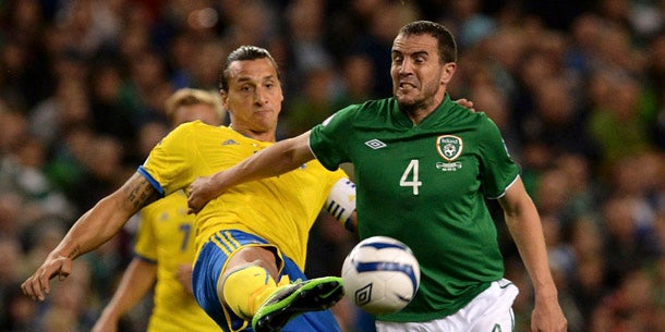 Irlands Startrainer Giovanni Trapattoni durfte sich über einen idealen Start freuen. Nach einem missglückten Lustig-Kopfball-Rückpass traf Keane die Stange, die Schweden brachten den Ball nicht weg, und der Kapitän der Hausherren staubte mit einem wuchtigen Schuss zum 1:0 ab. Unmittelbar zuvor hätte eine abgerissene Flanke von James McClean fast den Weg ins Tor gefunden, landete aber an der Latte (21.).