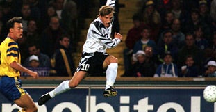 Am 6. September 1997 war Herzog im ausverkauften Wiener Happel-Stadion gegen Schweden wieder der Sturm-Partner von Polster, und wieder war es der damalige Bremen-Legionär, der die Partie entschied. In der 76. Minute nahm sich der Offensivspieler aus rund 20 Metern ein Herz und donnerte den Ball zum 1:0-Siegtreffer in die Maschen (siehe Bild).
