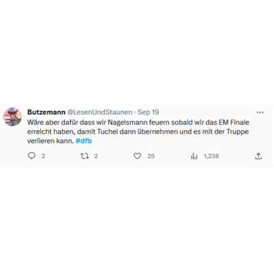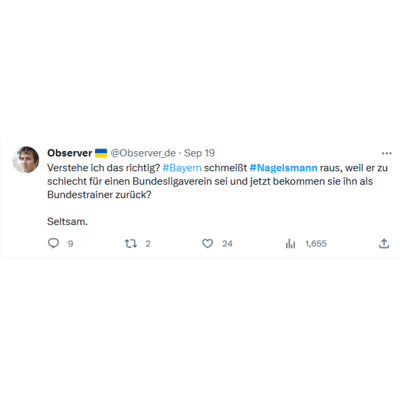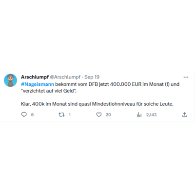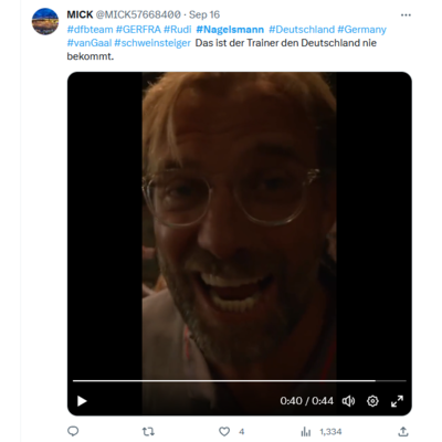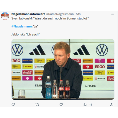 Nagelsmann sein DFB-Engagement ist vorerst bis nach der EURO 2024 datiert. Naben Jürgen Klopp, Louis van Gaal und Stefan Kuntz galt der Ex-Bayern-Coach als klarer Wunschkandidat. Zumindest beim DFB. Die deutschen Fußball-Fans sehen das ganz anders. Sein erster Auftritt als neuer Bundestrainer wurde daher in den sozialen Netzwerken kontrovers diskutiert. Dazu muss gesagt werden: Bei der ein oder anderen Reaktion konnte man sich das Schmunzeln nicht verkneifen.