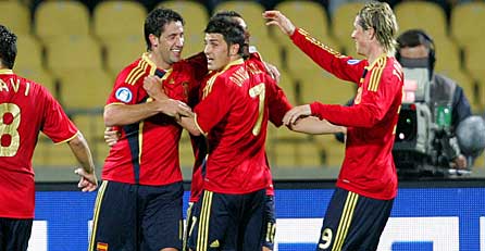 Spaniens Rekordjäger sind mit angezogener Handbremse ins Halbfinale des Fußball-Confederations-Cups geschlichen. Nach dem 5:0-Schützenfest zum Auftakt gegen Neuseeland begnügte sich der Europameister am Mittwoch in Bloemfontein gegen den Irak mit einem 1:0-Pflichtsieg. Vor 31.000 Zuschauern gelang EM-Torschützenkönig David Villa (55.) gegen den destruktiven Asien-Meister das goldene Tor für die Iberer, die mit minimalem Kraftaufwand als erstes Team die Vorschlussrunde erreichten. Der Irak wahrte durch die knappe Niederlage die Chance, als Zweiter der Gruppe A ebenfalls unter die letzten Vier zu kommen.