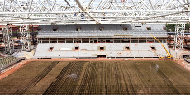 Bei Installationsarbeiten im Fußball-WM-Stadion der brasilianischen Stadt Cuiaba ist ein Arbeiter durch einen Stromschlag ums Leben gekommen. Nach lokalen Medienberichten war der 32-Jährige zum Zeitpunkt des Unfalls am Donnerstag damit beschäftigt, Lichtstrahler in einem der Aufgänge zu den Zuschauer-Logen der "Arena Patanal" anzubringen. Die genaue Unfallursache soll untersucht werden.