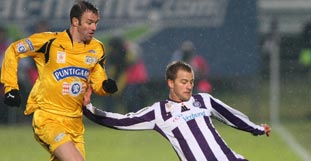 regnerischem Wetter nicht zuletzt der Austria-Abwehr, Schiedsrichter Robert