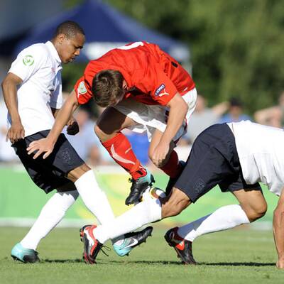 David Alaba hat sein Ausnahmekönnen auch zum Auftakt der Fußball-U19-EM in Frankreich unter Beweis gestellt. Trotz der 2:3-Niederlage gegen England am Sonntag in Flers bestach der Bayern-München-Legionär mit Übersicht, Technik und Schussgewalt. Neben dem Tor zum 1:2 traf der 18-jährige Wiener noch zwei Mal die Latte.
