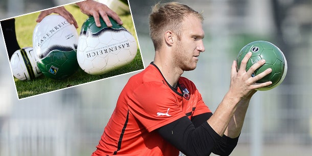 Das ist ein Ding: Unser Tormanntrainer Otto Konrad (früher Salzburg und Real Saragossa) packte gestern eine Kugel aus, die NICHT rund ist! Der vom Salzburger Sportwissenschaftler Sebastian Hörl erfundene "Eggball" (Eierball) hat veränderte Flugeigenschaften und ein noch nie dagewesenes Sprungverhalten. Damit sollen unberechenbare Situationen simuliert werden. Das erhöht die Reaktionsfähigkeit, schärft auch die Koordination.