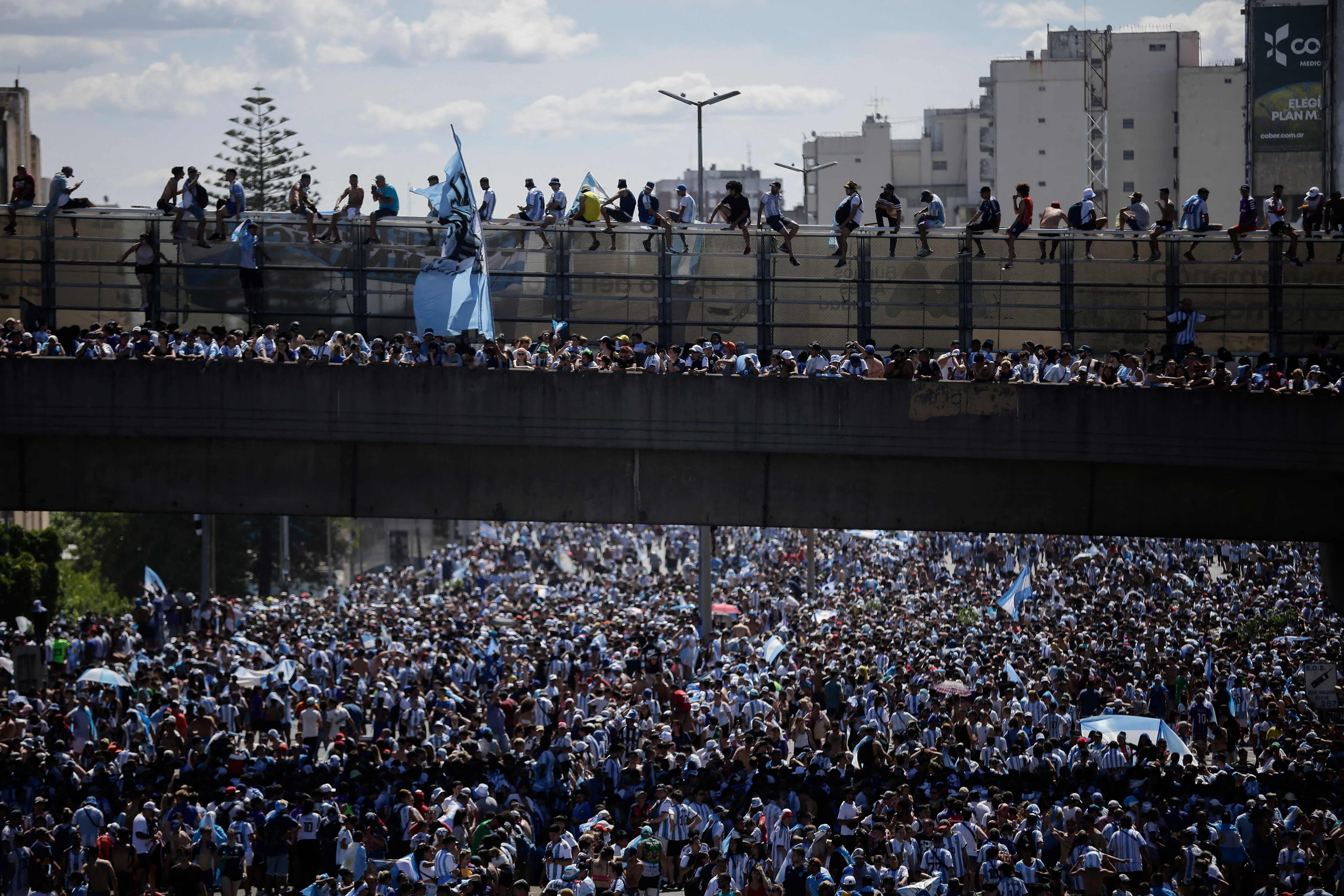 In der argentinischen Hauptstadt hatten sich davor chaotische Szenen abgespielt. Die Fans strömten auf Brücken und die Stadtautobahn, viele kletterten auf Ampeln und Verkehrsschilder. Bei rund 30 Grad warteten die Fans in der prallen Sonne stundenlang auf die Ankunft der Nationalmannschaft. Der U-Bahn-Verkehr wurde eingestellt. Die Fluggesellschaft Aerolíneas Argentinas warnte aufgrund des Verkehrschaos vor Problemen mit verspäteten Flügen. Auch die Mobilfunknetze waren zeitweise überlastet.